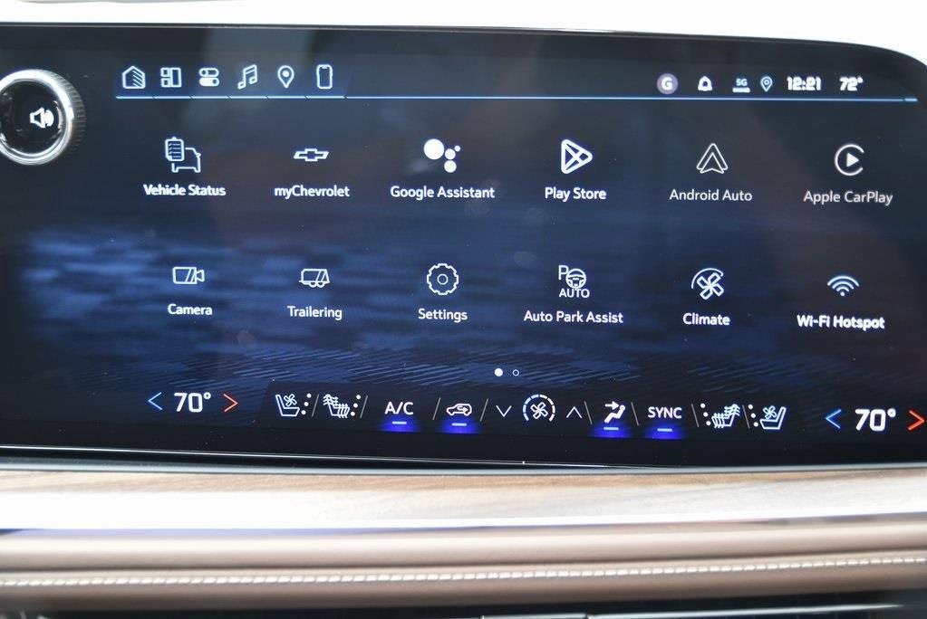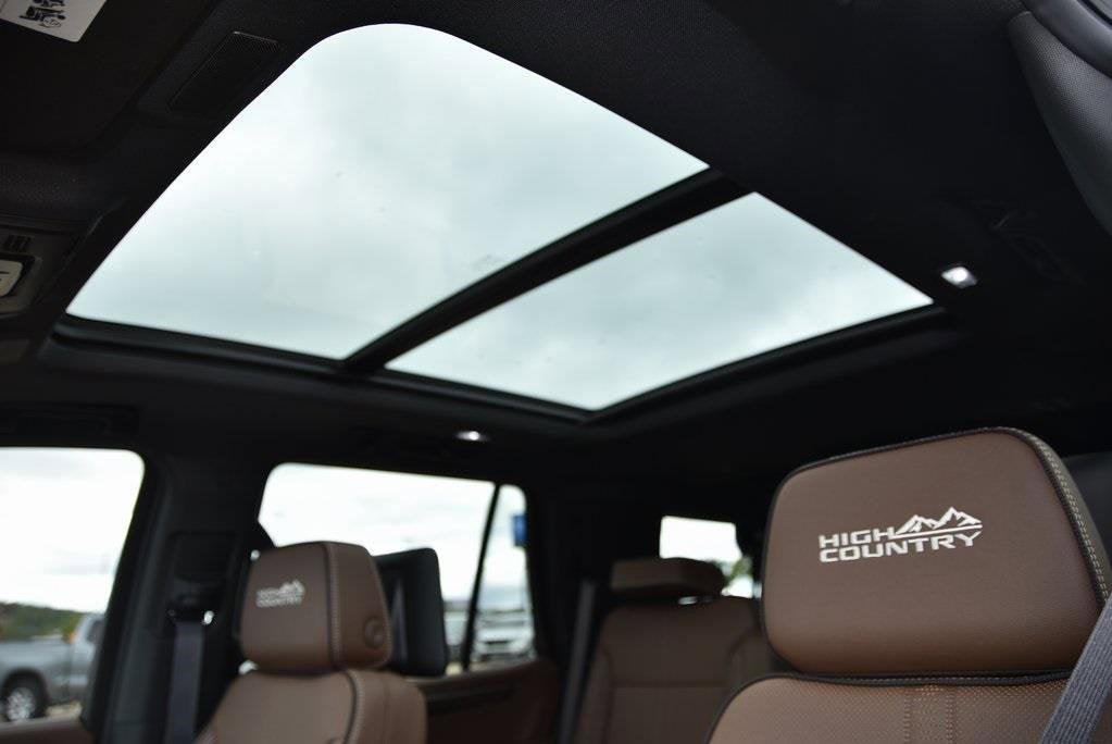 **4X4**, **3RD ROW SEATING**, **Bluetooth®**, **BLACK BOWTIE(S)**, **HEATED MIRRORS**, **HEATED & COOLED LEATHER/EVOTEX SEATS**, **LEATHER SEATING**, **KEY CARD**, **REMOTE ENTRY**, **GOOGLE BUILT-IN NAVIGATION**, **ONSTAR WIFI HOTSPOT**, **POWER SUNROOF/MOONROOF**, **REMOTE START**, **REAR SEAT DVD/MEDIA SYSTEM**, **BACK-UP CAMERA**, **TOW PACKAGE**, **SIRIUS/XM SATELLITE RADIO**, **USB**, 4WD, Jet Black/Mocha w/Perforated Leather Seat Trim, 15 Diagonal Multi-Color Head-Up Display, 2-Speed Active Electronic AutoTrac Transfer Case, 3-Spoke Wrapped Steering Wheel, 3rd Row 60/40 Power-Folding Split-Bench Seat, 4-Wheel Disc Brakes, 8-Way Power Driver Seat Adjuster, 8-Way Power Front Passenger Seat Adjuster, ABS brakes, Adaptive suspension, Advanced Security Package, Advanced Trailering Package, Air Conditioning, Air Ride Adaptive Suspension, AM/FM radio: SiriusXM with 360L, Apple CarPlay/Android Auto, Auto High-beam Headlights, Auto-leveling suspension, Automatic temperature control, AutoSense Hands-Free Power Liftgate, Brake assist, Driver vanity mirror, Dual Exhaust System, Dual front side impact airbags, Dual-Pane Power Panoramic Sunroof, Electronic Stability Control, Emergency communication system: OnStar and Chevrolet connected services capable, Exterior Parking Camera Rear, Extra Capacity Cooling System, Floor Console, Front Bucket Seats, Front Center Armrest, Front dual zone A/C, Front fog lights, Front LED Fog Lamps, Fully automatic headlights, Garage door transmitter, Glass Breakage Sensor, Heads-Up Display, Heated 2nd Row Outboard Seats, Heated Steering Wheel, High Country Deluxe, Hill Descent Control, Integrated Trailer Brake Controller, Key Card, LED Tail Lamps, Low tire pressure warning, Magnetic Ride Control Suspension, Max Trailering Package, Memory seat, Navigation system: Google built-in compatibility (select service plan required, terms and limitations apply), Outside Heated Power-Adjustable Mirrors, Outside temperature display, Overhead airbag, Panic alarm, Passenger vanity mirror, Perforated Leather Seat Trim, Power Release 2nd Row Bucket Seats, Power steering, Power windows, Power-Retractable Assist Steps, Preferred Equipment Group 3LZ, Premium audio system: Chevrolet Infotainment 3 Premium, Radio data system, Radio: 17.7 Diagonal Advanced Color LCD Display, Rain sensing wipers, Rear air conditioning, Rear Power Liftgate, Rear Seat Media System, Rear window defroster, Rear window wiper, Remote Start, Smart Trailer Integration Indicator, Speed control, Steering wheel memory, Steering wheel mounted audio controls, Super Cruise, Technology & Entertainment Package, Technology Package, Telescoping steering wheel, Theft-Deterrent Alarm System, Tilt steering wheel, Traction control, Trailer Camera Provisions, Trailering Assist Guidelines, Universal Home Remote, Variably intermittent wipers, Vehicle Inclination Sensor, Vehicle Interior Movement Sensor, Wheels: 22 x 9 Polished Aluminum, Wireless Phone Charging. 14/18 City/Highway MPG