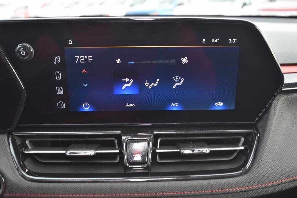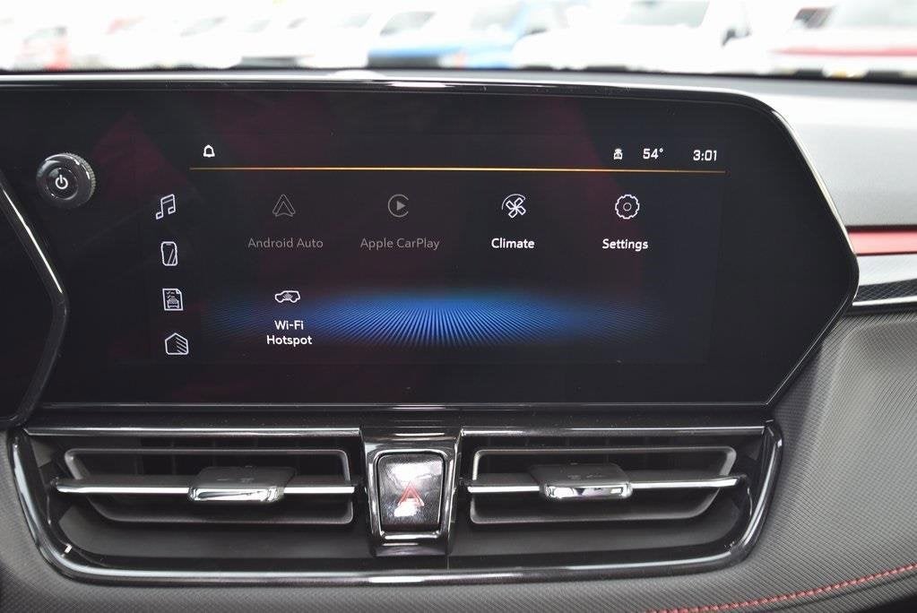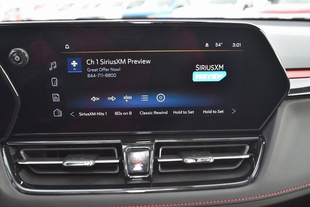 **Bluetooth®**, **BLACK BOWTIE(S)**, **HEATED MIRRORS**, **HEATED LEATHER/EVOTEX SEATS**, **REMOTE ENTRY**, **ONSTAR WIFI HOTSPOT**, **REMOTE START**, **BACK-UP CAMERA**, **SIRIUS/XM SATELLITE RADIO**, **USB**, 1 Type-A and 1 Type-C USB Charging-Only Ports, 120-Volt Power Outlet, 4-Wheel Disc Brakes, 6 Speakers, 8-Way Power Driver Seat Adjuster, ABS brakes, Air Conditioning, Auto High-beam Headlights, Brake assist, Cabin Humidity Sensor, Compass, Convenience Package, Driver and Front Passenger Illuminated Vanity Mirrors, Driver Confidence Package, Driver vanity mirror, Dual front side impact airbags, Electronic Stability Control, Emergency communication system: OnStar and Chevrolet connected services capable, Enhanced Performance 6-Speaker Audio System, Evotex Seat Trim, Exterior Parking Camera Rear, Flat-Folding Front Passenger Seatback, Front Bucket Seats, Front Center Armrest, Front reading lights, Fully automatic headlights, Hands Free Power Programmable Liftgate, Heated door mirrors, Heated Driver and Front Passenger Seats, Heated steering wheel, Illuminated entry, Inside Rear-View Auto-Dimming Mirror, Knee airbag, Lane Change Alert with Side Blind Zone Alert, Low tire pressure warning, Overhead airbag, Panic alarm, Passenger vanity mirror, Power door mirrors, Power steering, Power windows, Preferred Equipment Group 1RS, Radio data system, Radio: AM/FM Stereo Audio System, Rear Cross Traffic Alert, Rear Park Assist, Rear side impact airbag, Rear window defroster, Rear window wiper, Ride and Handling Suspension, Single-Zone Automatic Climate Control, SiriusXM Trial Subscription, Speed control, Split folding rear seat, Steering wheel mounted audio controls, Telescoping steering wheel, Tilt steering wheel, Traction control, Variably intermittent wipers, Wheels: 19 High Gloss Black Machined Aluminum, Wireless Apple CarPlay/Android Auto, Wireless Charging. 29/33 City/Highway MPG