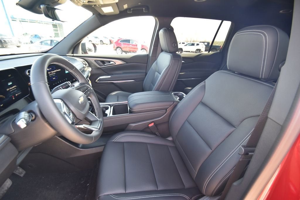 **3RD ROW SEATING**, **Bluetooth®**, **BLACK BOWTIE(S)**, **HEATED MIRRORS**, **HEATED LEATHER/EVOTEX SEATS**, **KEY CARD**, **REMOTE ENTRY**, **GOOGLE BUILT-IN NAVIGATION**, **ONSTAR WIFI HOTSPOT**, **REMOTE START**, **BACK-UP CAMERA**, **TOW PACKAGE**, **SIRIUS/XM SATELLITE RADIO**, **USB**, 22 High Gloss Black Aluminum Wheels, 3rd row seats: split-bench, 4-Wheel Disc Brakes, 6-Speaker Audio System Feature, 8-Way Power Driver Seat Adjuster, ABS brakes, Air Conditioning, AM/FM radio: SiriusXM with 360L, Apple CarPlay/Android Auto, Auto High-beam Headlights, Automatic temperature control, Black Bowtie, Black Lug Nut & Wheel Lock Kit, Brake assist, Child-Seat-Sensing Airbag, Driver Confidence Package, Driver vanity mirror, Dual front side impact airbags, Electronic Stability Control, Emergency communication system: OnStar, Evotex Seat Trim, Four wheel independent suspension, Front Bucket Seats, Front Center Armrest, Front dual zone A/C, Front reading lights, Fully automatic headlights, HD Surround Vision, Heated door mirrors, Heated Driver and Front Passenger Seats, Heated steering wheel, Illuminated entry, Key Card, Low tire pressure warning, Outside temperature display, Overhead airbag, Panic alarm, Passenger vanity mirror, Power door mirrors, Power Liftgate, Power Outlet, Power steering, Power windows, Preferred Equipment Group 1LT, Premium Cloth Seat Trim, Radio data system, Radio: : Audio System w/17.7 Diagonal Display, Rear air conditioning, Rear Camera Mirror, Rear window defroster, Rear window wiper, SiriusXM with 360L Trial Subscription, Special Ride and Handling Suspension, Speed control, Steering wheel mounted audio controls, Telescoping steering wheel, Tilt steering wheel, Traction control, Traffic Sign Recognition, Turn signal indicator mirrors, Variably intermittent wipers. 20/26 City/Highway MPG